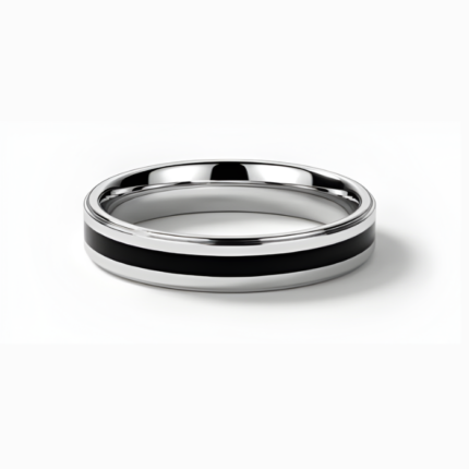 Midnight Edge Silver Band with Black Enamel