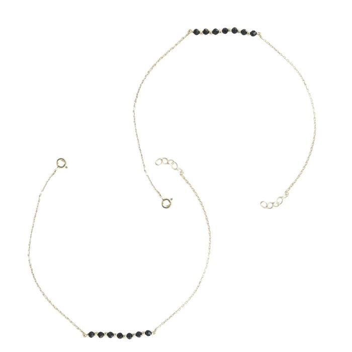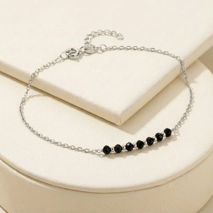 92.5 Sterling Silver Minimal Black Beads Chain Anklet