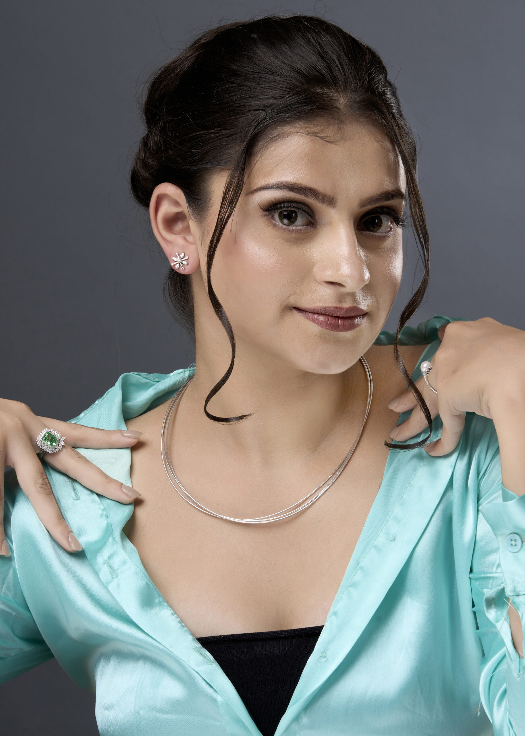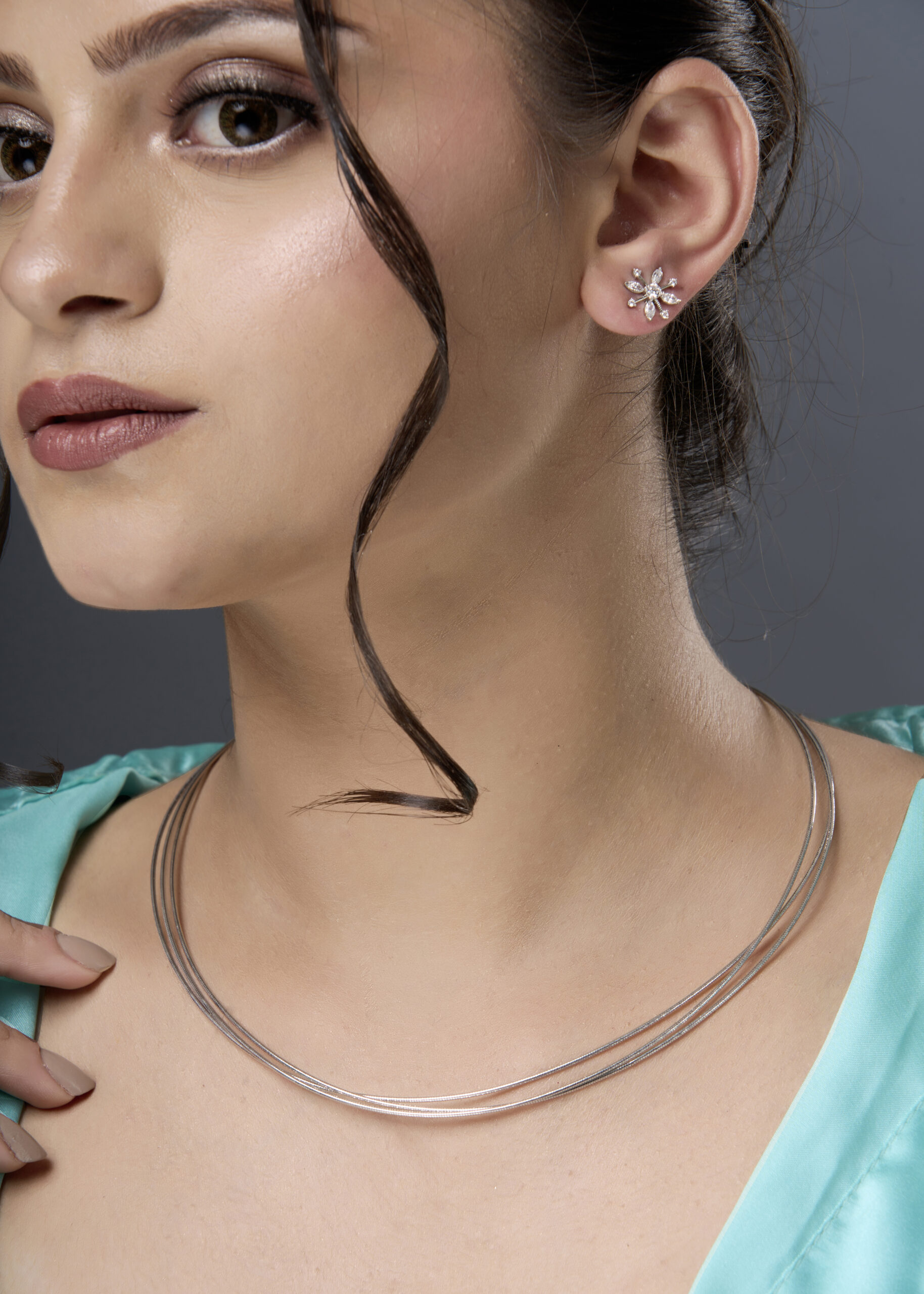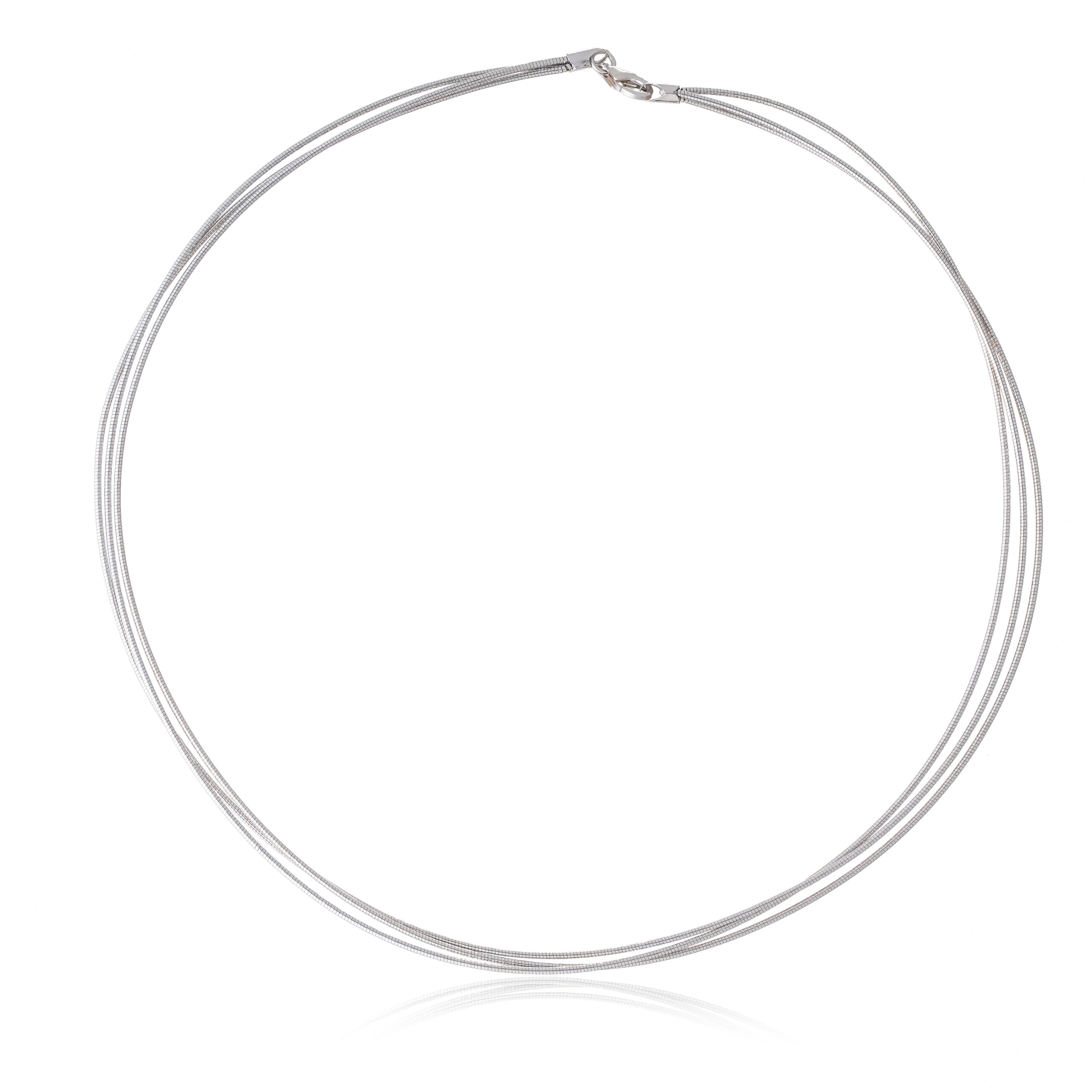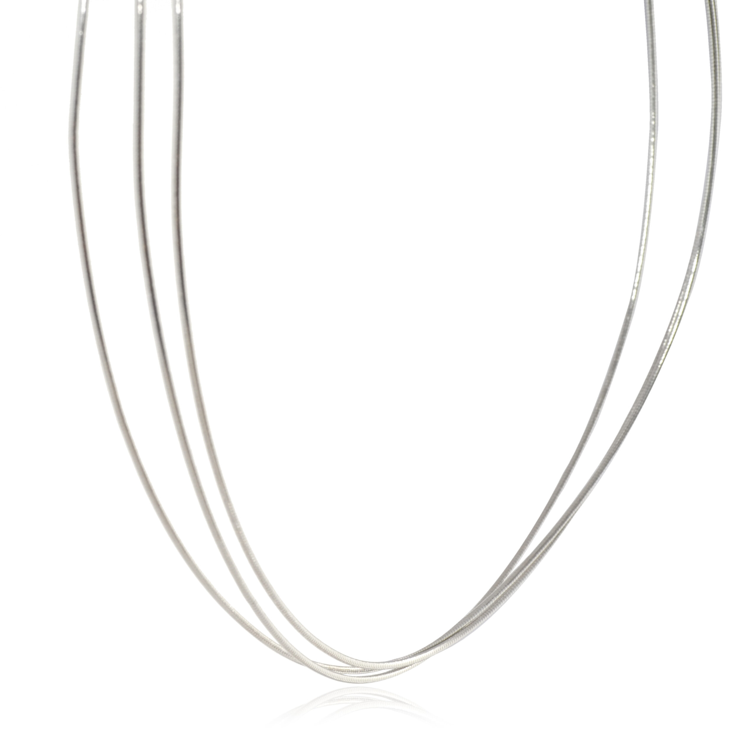 A sleek triple strand necklace in 92.5 sterling silver, offering a modern design for versatile and elegant styling.