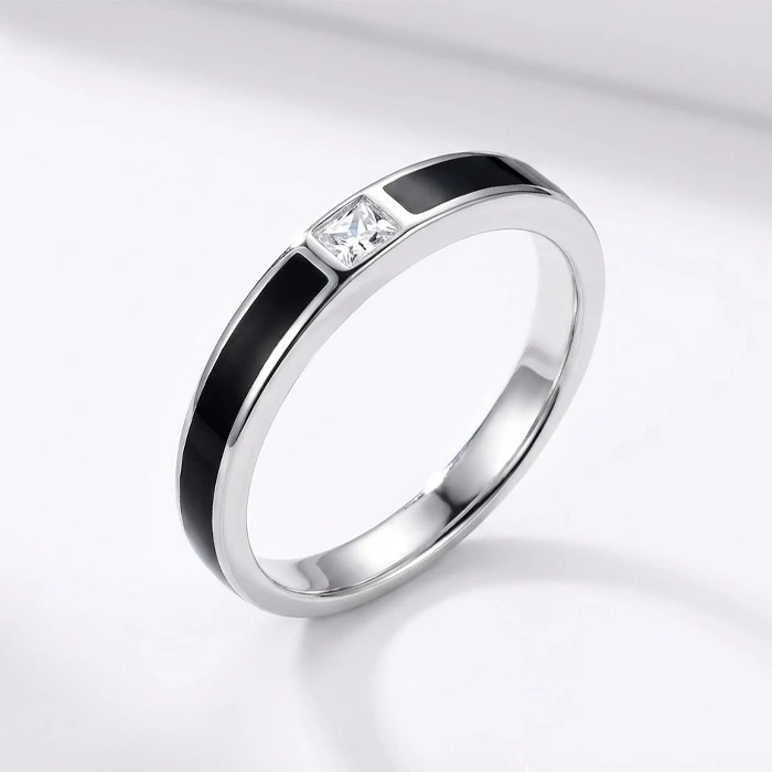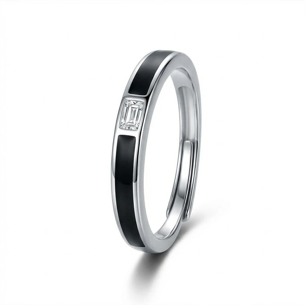 A sleek and modern Black Inlay Sterling Silver Ring crafted from genuine 925 silver and finished with a striking emerald-cut CZ. Designed for everyday elegance with a bold edge.
