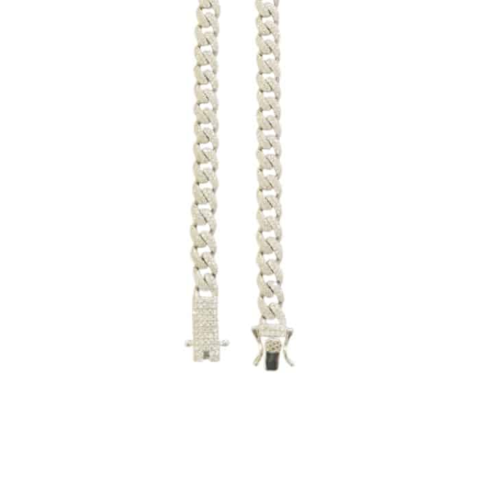 Luxury sterling silver Cuban link bracelet with dazzling pave cubic zirconia stones, perfect for men who love bold elegance.