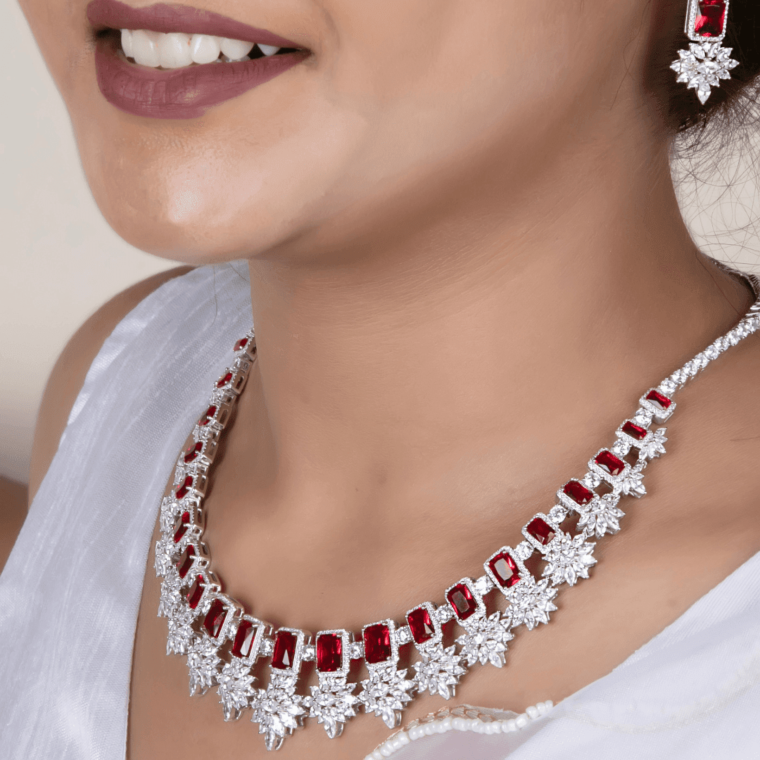It’s easy to be noticed wearing this Elegant Ruby Crystal Necklace, designed by Jina. It’s embellished with sparkling stones and is embellished with sterling silver designs which look amazing. It’s a stunning show of class and style. It’s perfect for weddings, formal occasions, formal events as well as other formal occasions, as well as to bring a touch of sophistication to your everyday attire. The design was designed to sparkle
