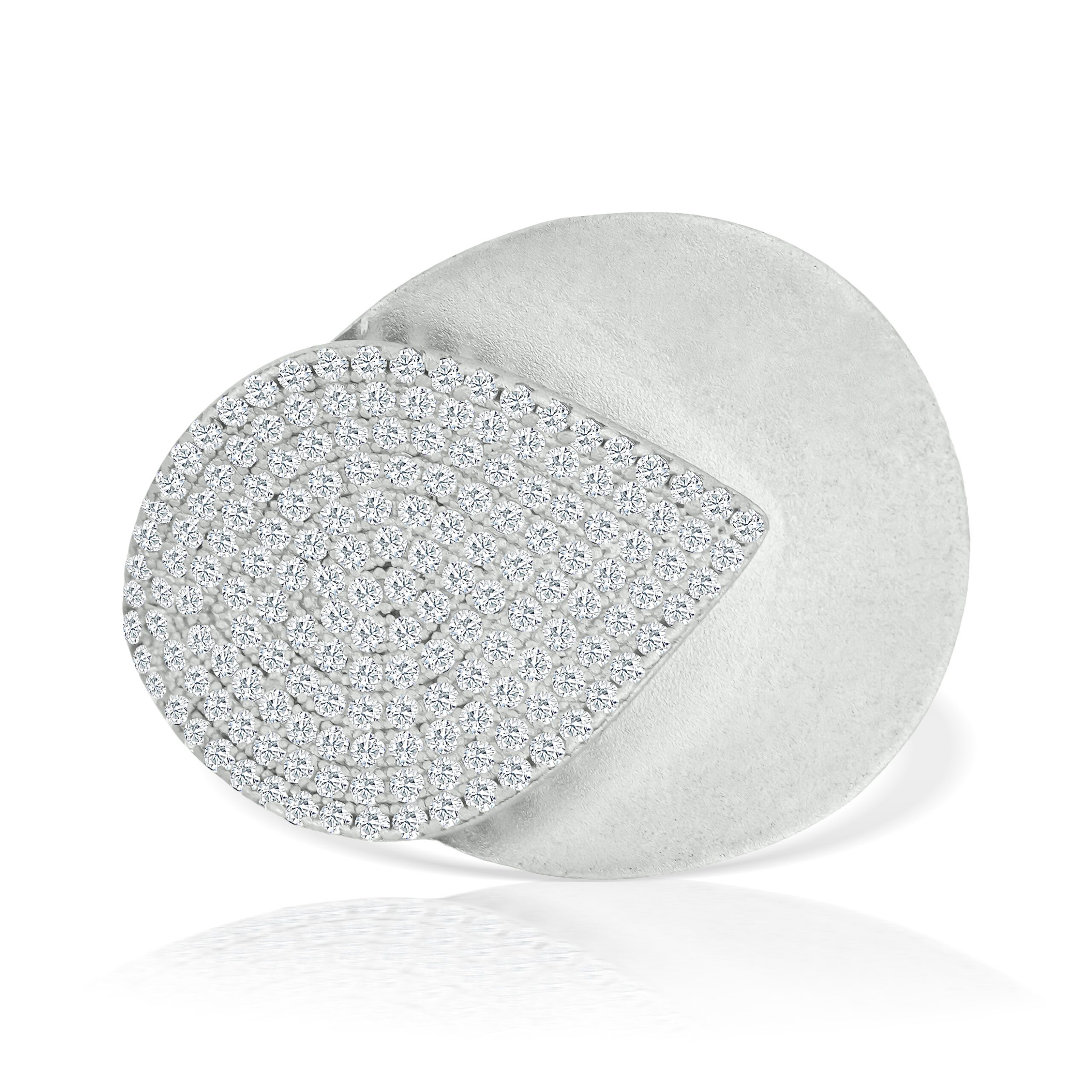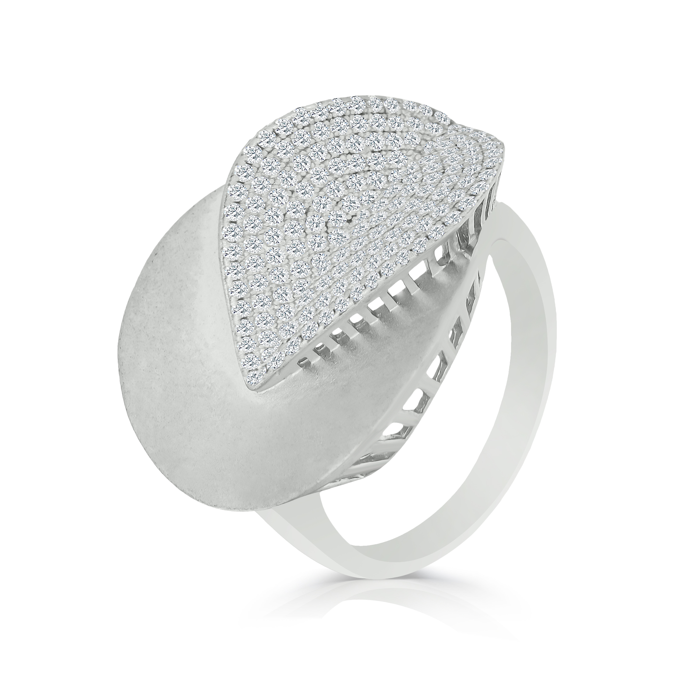 A luxurious 92.5 sterling silver ring featuring a diamond-encrusted leaf design, perfect for adding a modern, glamorous touch to any occasion.