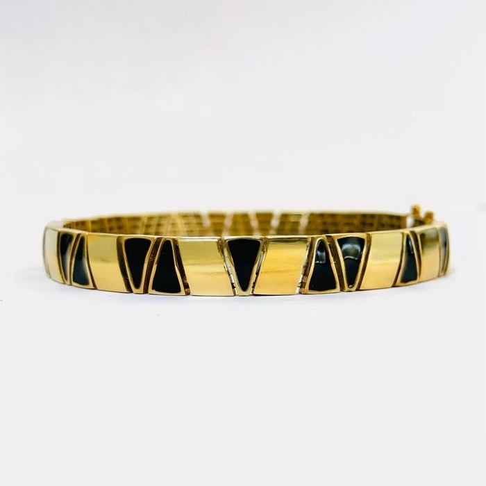 Plating/Finish: Gold-plated with black geometric inlay panels