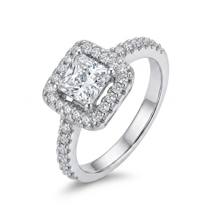 Regal Princess Cut Halo Ring in 92.5 Sterling Silver for Women & Girls