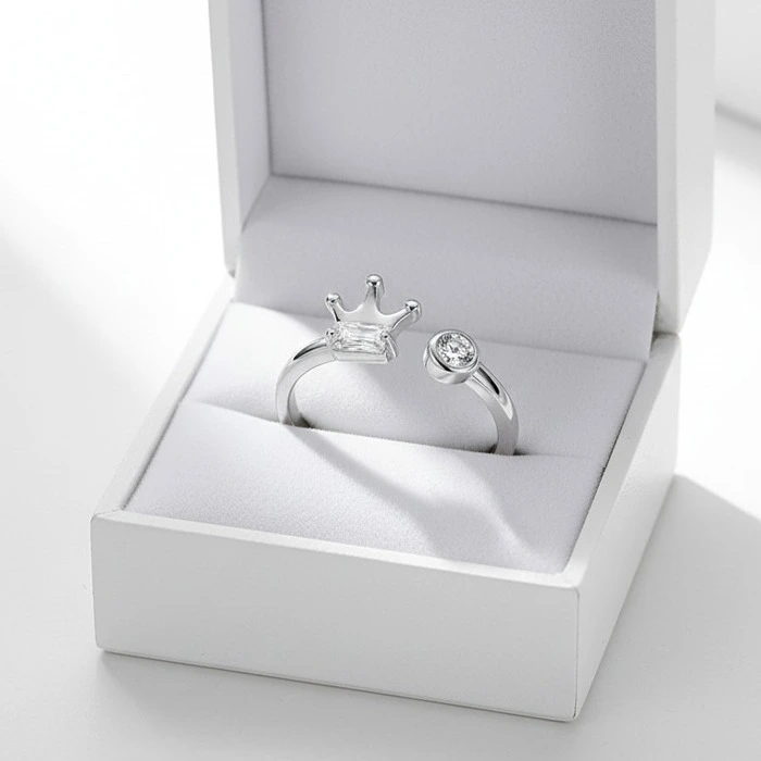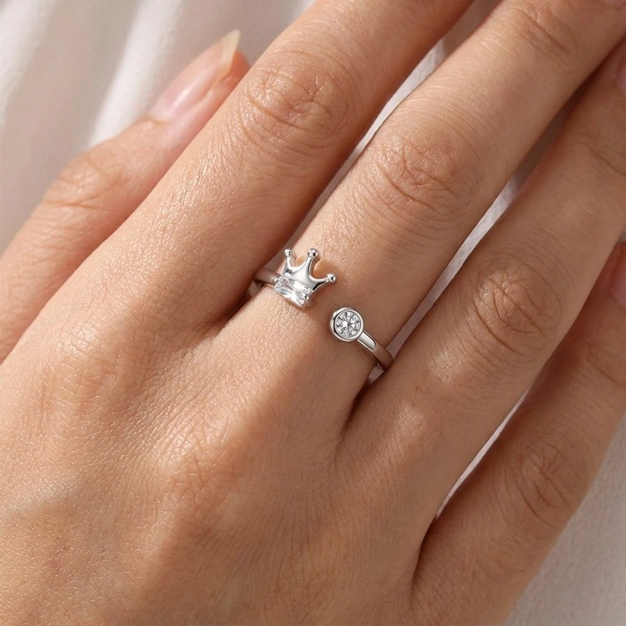 - Design: Crown-shaped, adjustable finger ring