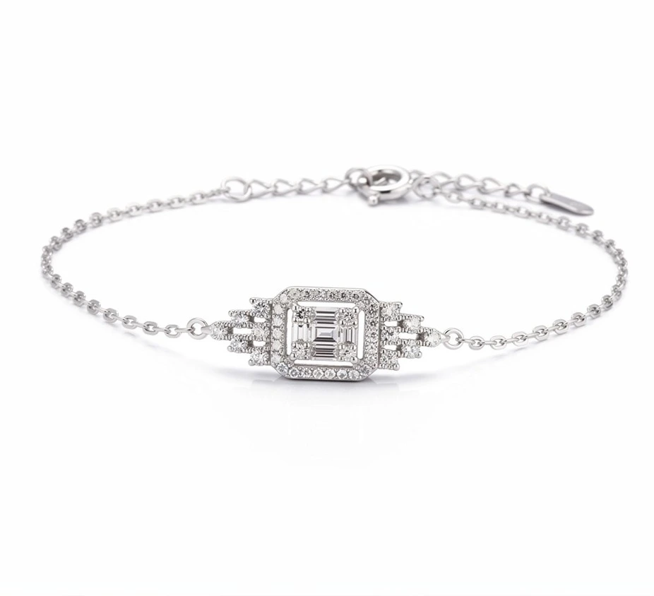 Elegant square CZ design bracelet crafted in pure 92.5 sterling silver, perfect for daily wear and special occasions.