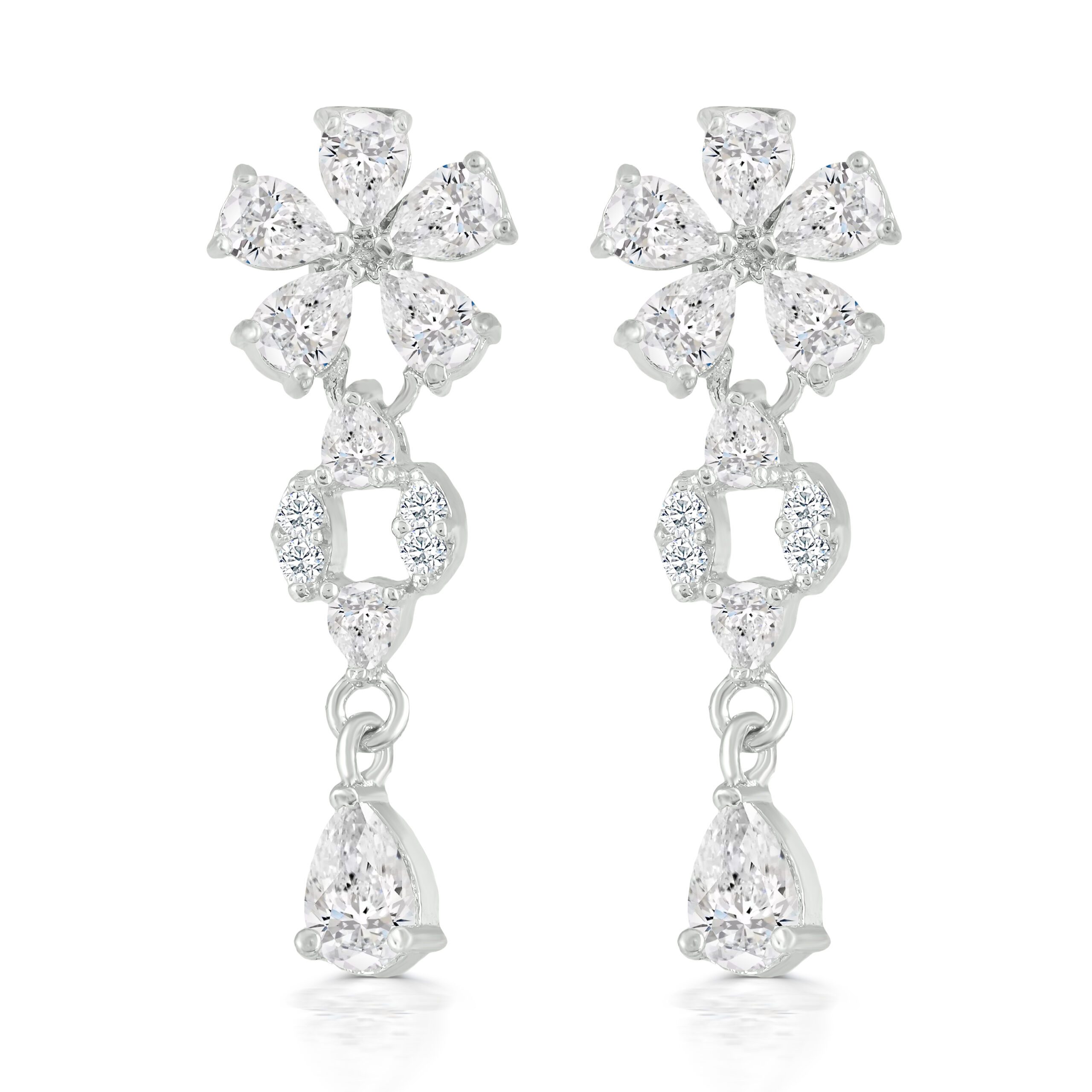 A luxurious sterling silver diamond necklace and earrings set with a teardrop pendant, featuring a stunning diamond cluster design. Perfect for special occasions and elegant affairs.