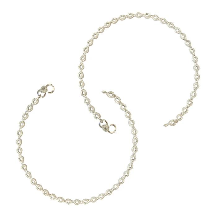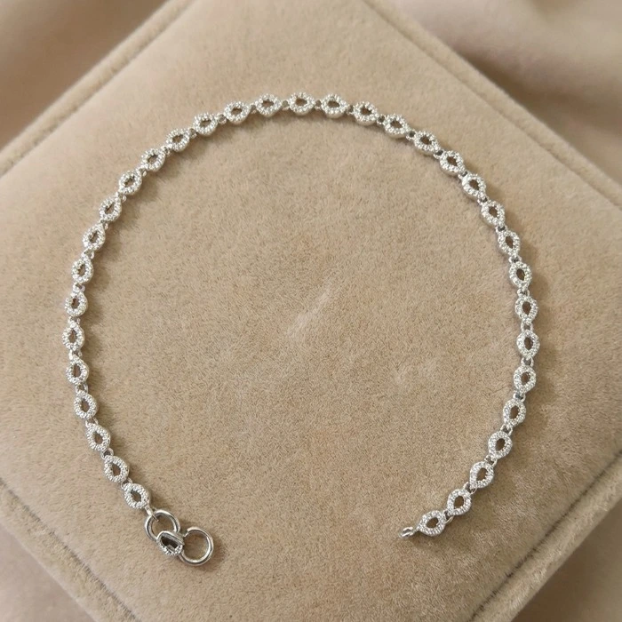 Delicate silver anklet featuring interlocking loops with a sparkling finish, perfect for daily wear or special occasions.