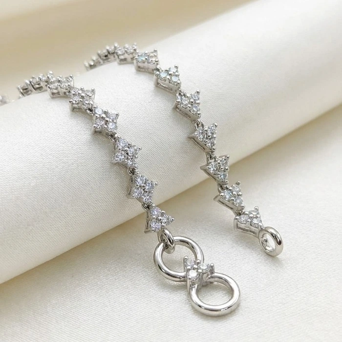 The Triple CZ Stone Silver Link Anklet is designed with a continuous pattern of three cubic zirconia stones placed closely together in each link. These links connect seamlessly to form a smooth, structured chain that sits neatly around the ankle. The evenly set stones add subtle sparkle without making the anklet look heavy or bulky.